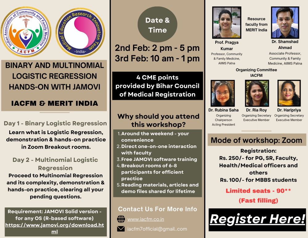Meet Prof. Pragya Kumar and Dr. Shamshad Ahmad for hands-on training with JAMOVI, a free R-based biostatistical software. All training will be online over the ZOOM platform.